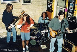 Metal. We weren't doing anything ground breaking. I had always wanted to write heavy songs. I wanted to get heavier. I was always into Megadeth, Metalicca, the heavier shit The old stuff when it was really heavy. Greg was into that, too. So when Greg got into the band, me and him immediately struck up this deal - Greg was in the band maybe a month or two before Chris was - We ended up really doing all this cool stuff Pantera like changed out lives in 1992. Ive gotten over it since then. I was like, "Lets write some heavier stuff." Then when Chris got in, he and Greg had a history. I said, "Man, now I got a great drummer and a great bass player; Id like to just get out of Lubbock!" I talked to them one night, "Do you guys wanta split?" They were like, "Weve been wanting to split, too." It was totally group decision. And we played our last show New Years Eve of 92. Chris: And you moved to Austin then? Jason: About six months later. CM: But we did make an effort - at the time, it was a major effort on our part - to get the guys in Uncle Nasty to change over to doing some original stuff Chris: So the three of yall left Uncle Nasty, and went off on yalls own When did Kerry join the band? CM: I remember pretty vividly: We were right down there